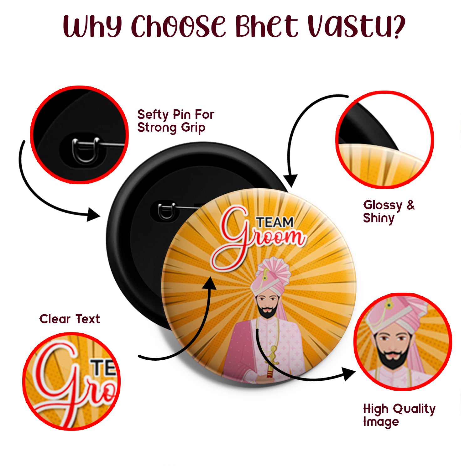 Crafted with premium quality materials, each badge comes with vibrant printing, smooth edges, and a sturdy safety pin for easy wearing. Whether it’s the Haldi, Mehendi, Sangeet, Reception, or the Wedding Day, these badges add a fun and personalized touch to every event.